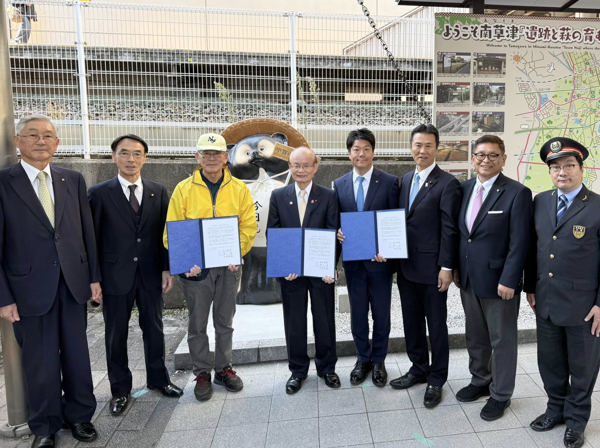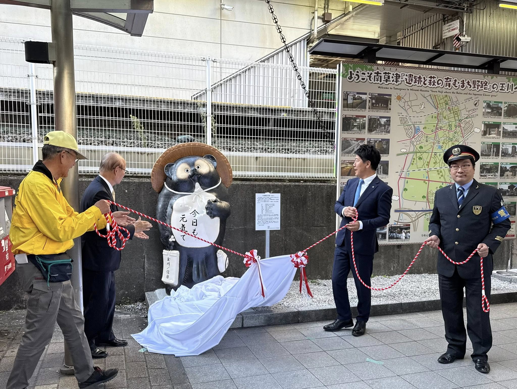 東口では甲賀市より贈られた「信楽焼たぬき」の除幕式も行われました。^ ^