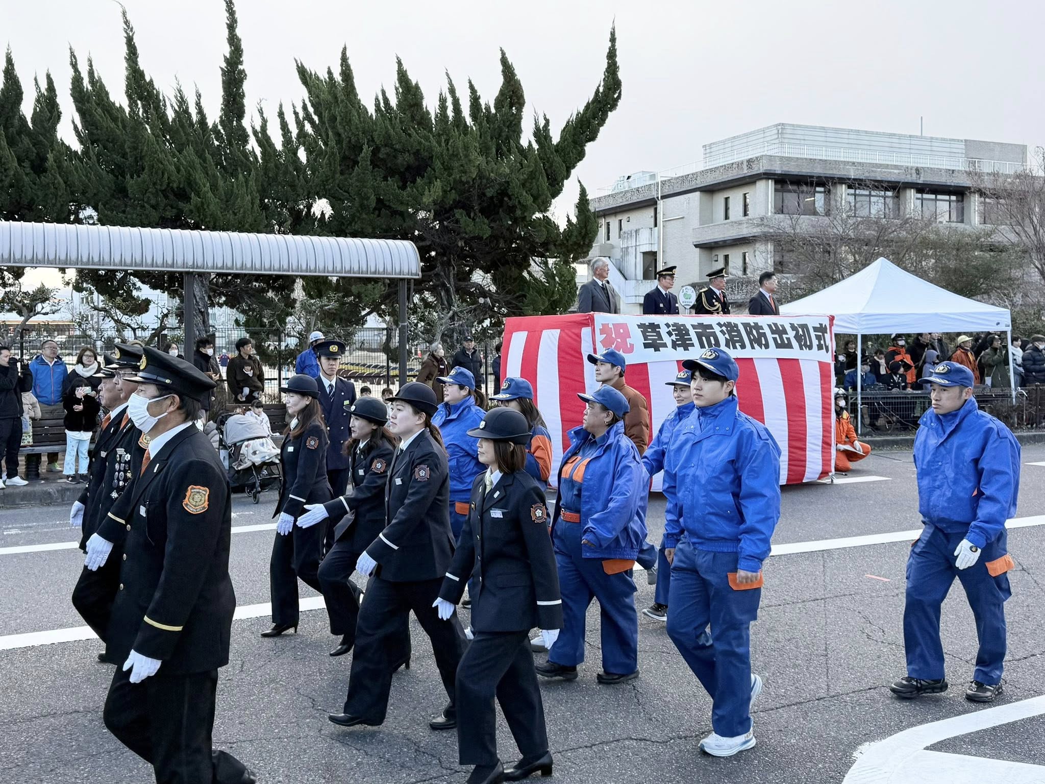 2026.01.16 『令和8年 草津市消防出初式』に出席しました🚒 一部式典では、防火・防災活動等に積極的に取り組まれた自治会や消防団員の表彰式が実施されました。二部訓練では、分列行進から始まり草津市消防団のポンプ車操法の披露が行われました。 <